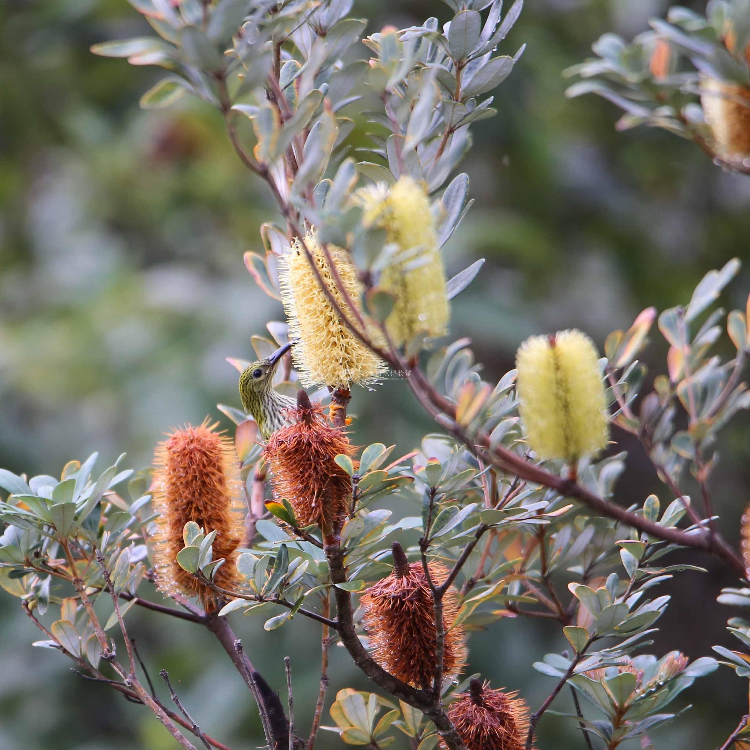 捕蛛鸟虽然叫“捕蛛鸟”,但其实主食是花蜜。之前看过几次它们,也只是魅影,只有这一次能拍到这么近的取食场景,充分体现了太阳鸟对花蜜的喜爱。 把这两种鸟放在一起是因为它们都食用这同一种花蜜,而且它们都有可以吸食花蜜的、弯弯的嘴,能体现自然演化的神奇和趋同。