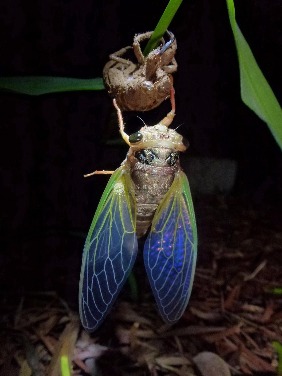 高砂熊蟬,普遍分布於平地和低海拔的物種,是都市裡最容易聽到的蟬鳴之一。而夏日的夜晚則是高砂熊蟬的羽化高峰,終齡若蟲從土裡鑽出來,找尋合適的地方羽化。這張是蟬羽化的展翅階段,猶如表演者在舞台上擺出最後的結束姿勢。在羽化結束後,牠將爬上樹頭,找尋配偶,展開一段新的旅程。