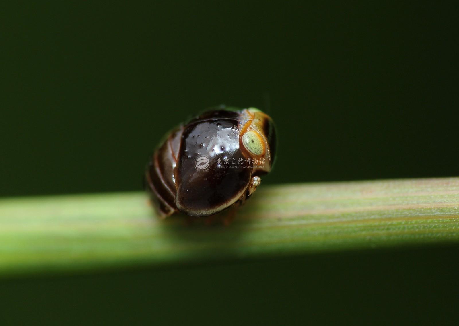 照片中的台灣球瓢蠟蟬成蟲體長約5mm,體色主要由橙紅、水青二色組成,全身色彩與花紋的組合十分鮮艷絢麗,很像小時候吃的柑仔糖,頗具療癒效果。但是台灣球瓢蠟蟬小時候的體長只有約1-2mm,體色大部分均為黑色,看起來就像是一顆黑芝麻,隨著牠的成長過程,黑色素才漸漸褪去,慢慢出現橙紅色,最後成為人見人愛的柑仔糖。