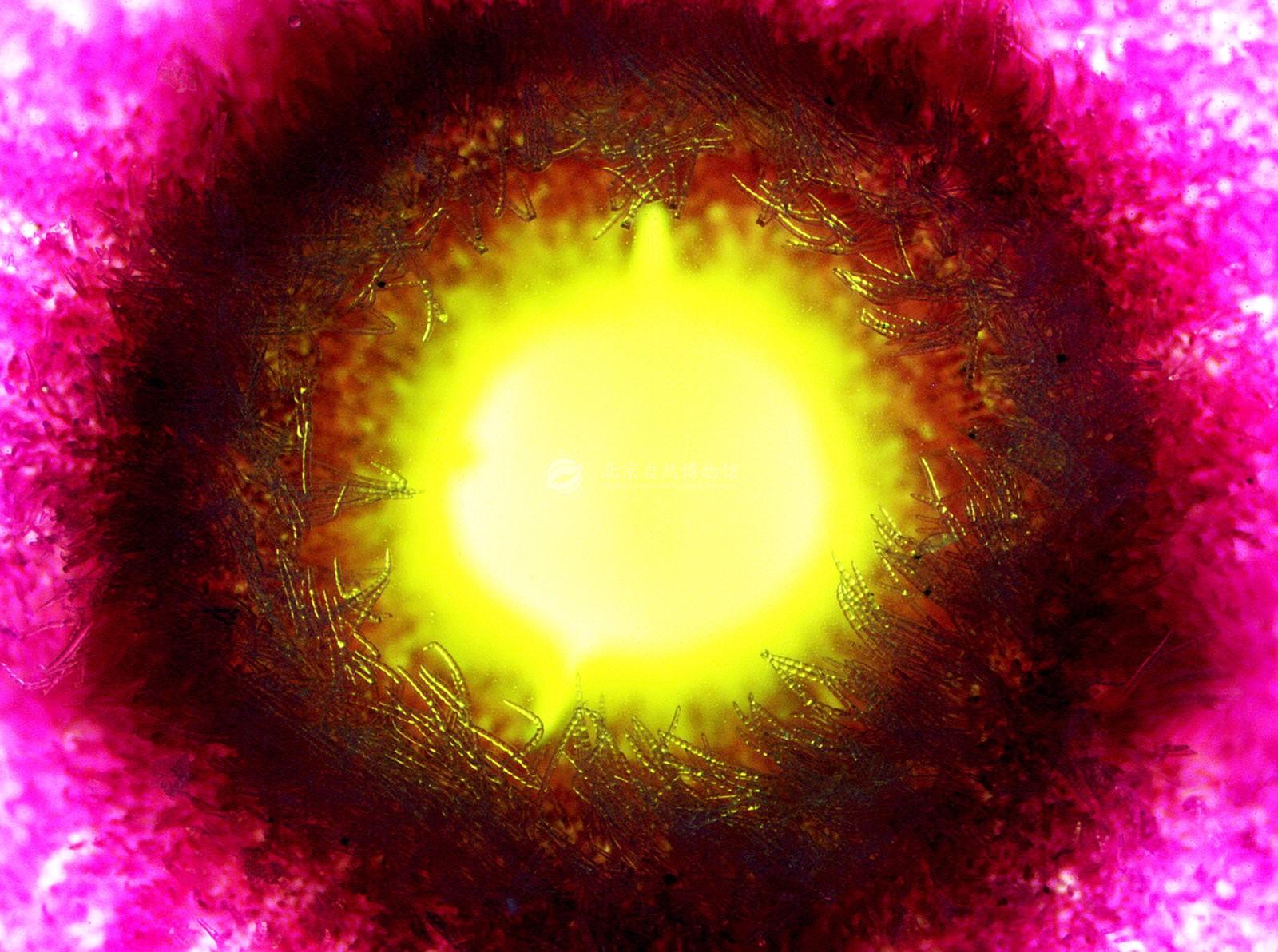 日日春經由顯微鏡的觀察下,可以看到花瓣連接花托筒的中心直徑約1mm,上面佈滿纖毛構造,此纖毛構造可以防止灰塵、雨水自開口進入,保護花藥及雌蕊使它們可以藏在花托筒中。而當昆蟲的口器為了吸食密線而進入花托筒時,可將花粉推往柱頭周邊以完成授粉。