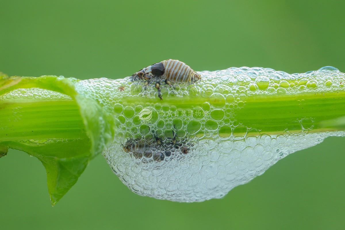 創作理念:用鏡頭記錄家鄉生態 嗜菊短頭脊沫蟬若蟲[Poophilus costalis(Walker, 1851)](半翅目:沫蟬總科:尖胸沫蟬科) 嗜菊短頭脊沫蟬若蟲 ,會突吐泡泡保護自己,以泡沫包裹全身來防禦敵人,利用泡沫的黏性讓昆蟲掉落,保護自己避免被其它的具敵性的昆蟲掠食,沫蟬的泡沫具有防禦的功能,利用泡沫的黏性使昆蟲掉落其中,無法行動但不會立即死亡。以刺吸植物木質部汁液為生,寄主廣泛。