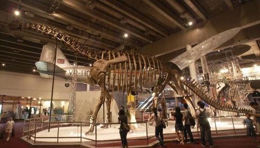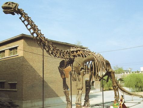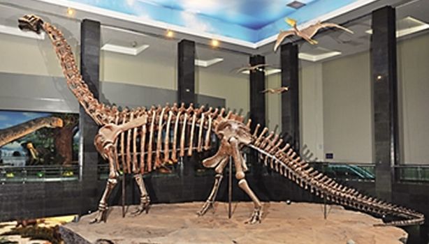 查干诺尔龙化石,全身骨骼有70%均保存良好,身长26米,高达12米,体重逾60吨。